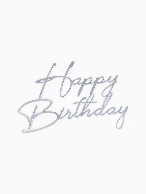 • Цена за 3 шт. Топпер для торта "Happy Birthday " акрил, цвет серебро