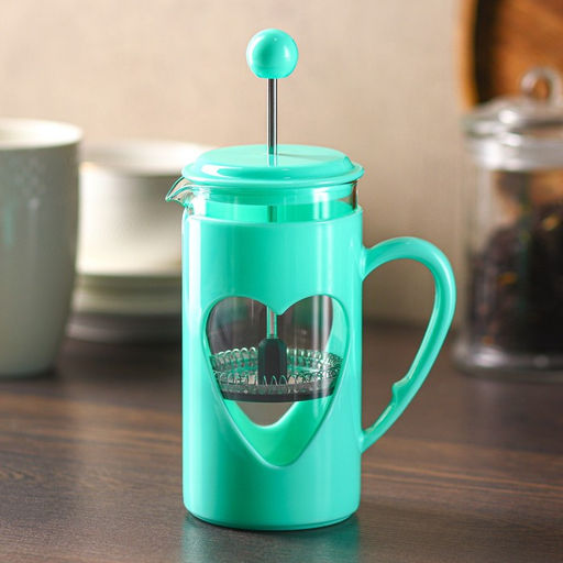 • Заварочный чайник френч-пресс Доляна Комплимент, 350 мл, стекло, бирюзовый