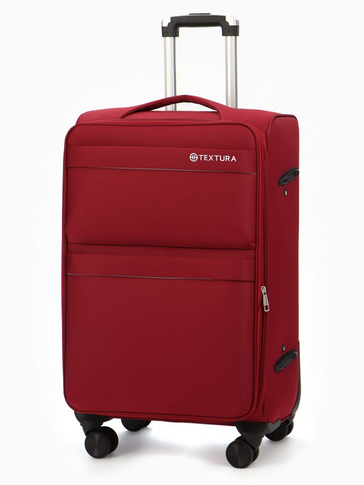 • Чемодан 24",Текст,42*26*68,отд на молнии,2 нар/карм, увелич,код замок,4 колеса, красный