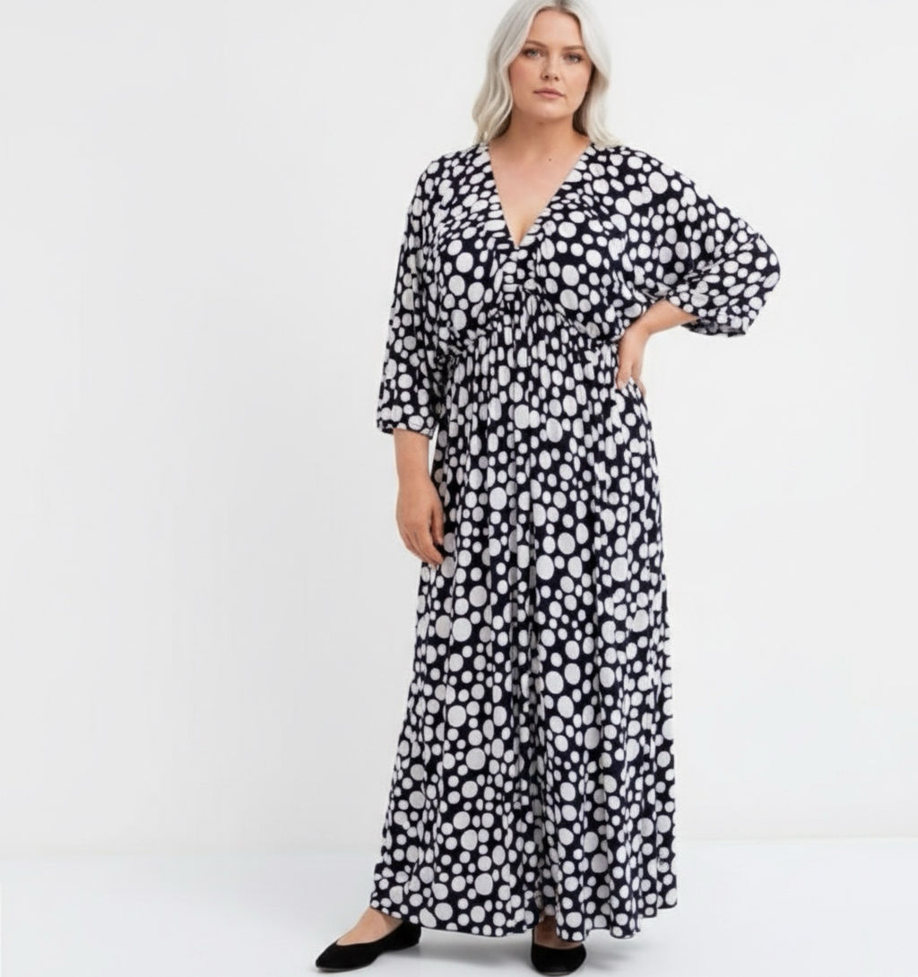 Платье большого размера в белый горох