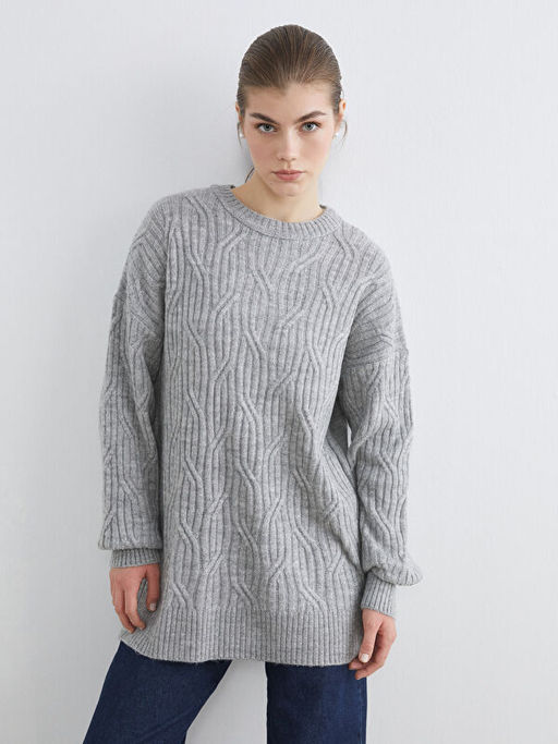 • Bisiklet Yaka Kendinden Desenli Kad?n Triko Kazak