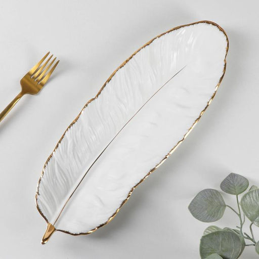 • Блюдо керамическое сервировочное «Рапсодия. Лист», 36×12×4 см, цвет белый