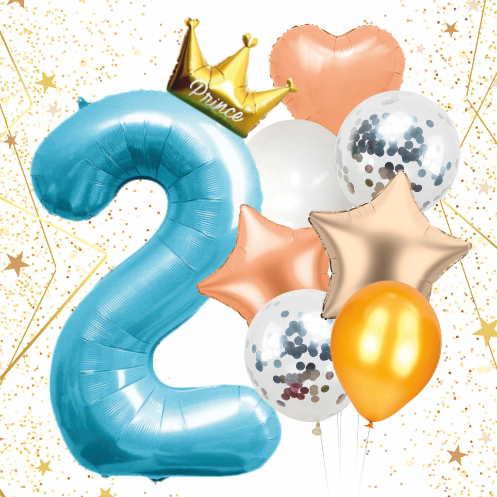 Набор шаров 8 шт "2 - Prince", голубой (цирфа + 7 шаров)