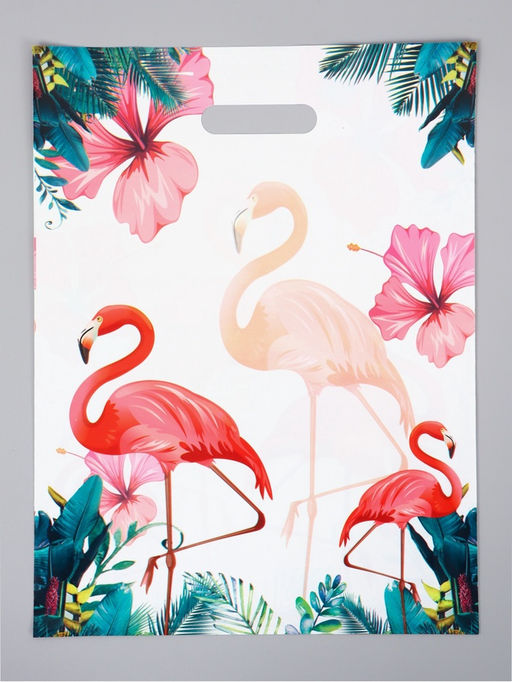 • Цена за 50 шт. Пакет полиэтиленовый с вырубной ручкой "Фламинго" 30 х 40 см 60 мкм