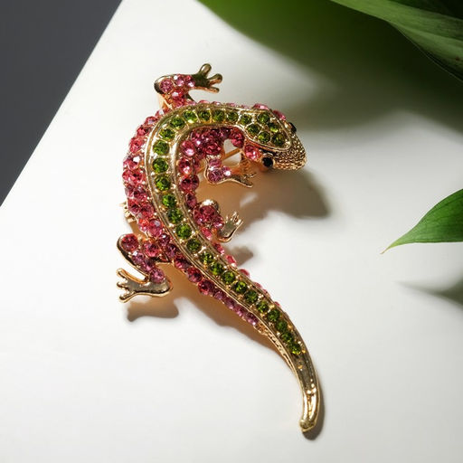 • Брошь «Ящерица» тропическая, розово-зелёная в золоте