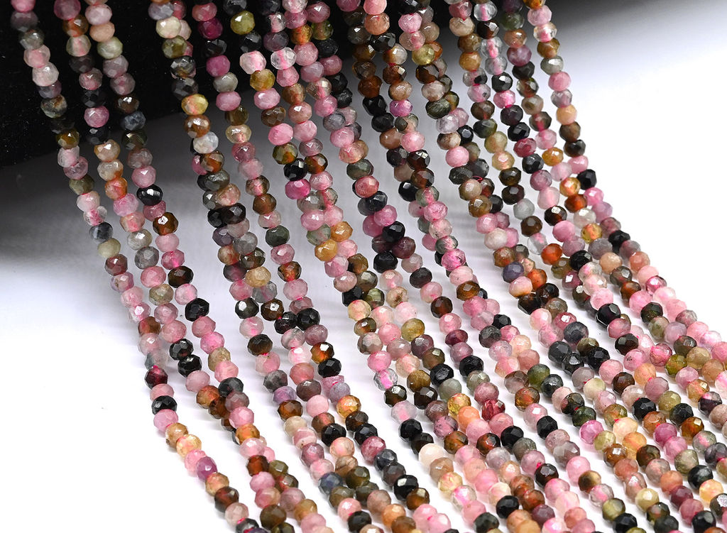 Бусины из турмалина рондель граненый 2мм, 39см, 195 бусин Радуга камня