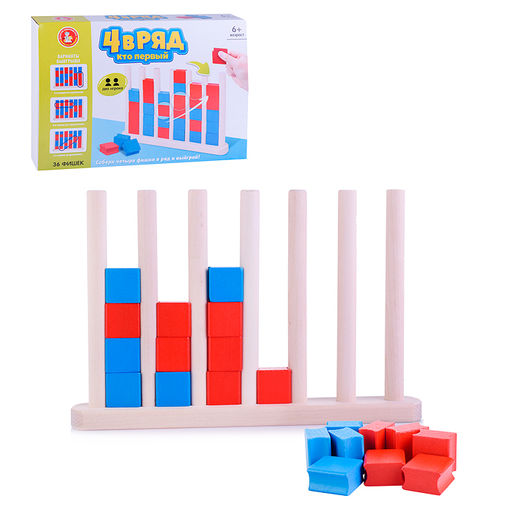 Азартная логическая игра для детей и их родителей. Собери первым четыре фишки в ряд и выиграй! Состав набора: · игровое основание – 1 шт. · фишки деревянные красного и синего цвета – 36 шт. Игра предназначена для детей от 6 лет и рассчитана на двух игроков. Как играть? Цель игры – первым выложить 4 фишки своего цвета в один ряд (по горизонтали, по вертикали или по диагонали). Каждый игрок получает все фишки одного цвета. Игроки друг за другом вставляют вдоль направляющих столбиков по одной фишке. Старайтесь размещать свои фишки рядом друг с другом и одновременно прерывать ряды фишек противника на самых ранних этапах. Игроки продолжают делать ходы, пока одному из них не удастся закончить ряд. Победит тот, кто первым выложит непрерывный ряд из четырёх фишек по горизонтали, вертикали или диагонали. Настольная игра «4 в ряд. Кто первый» развивает счётные навыки, логику, сообразительность, внимательность, пространственное мышление и мелкую моторику. Размер основы: 26 х 3 х 17 см. Размер фишки: 2,5 х 2,5 х 1,5 см. Материал: дерево. Для детей от 6 лет. Соответствует требованиям безопасности продукции. • Бренд: Десятое королевство • Размер упаковки: 20x28x4.5 см