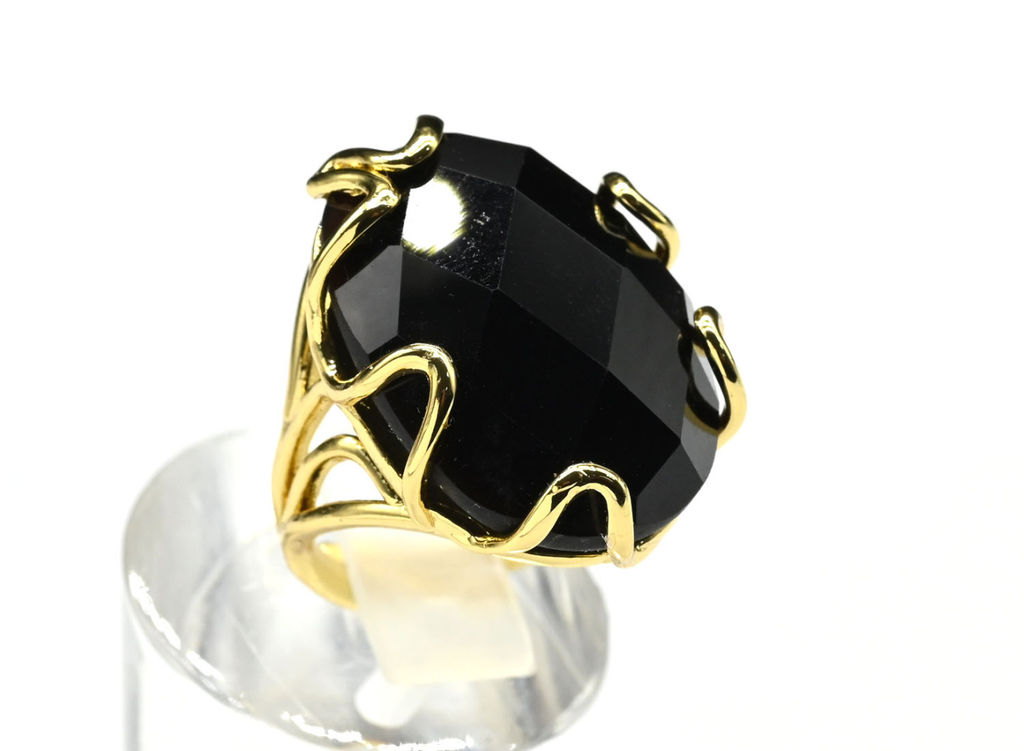 • Кольцо с агатом черным (имитиция) из ювелирного сплава Радуга камня