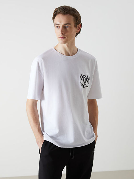 • Bisiklet Yaka K?sa Kollu Bask?l? Penye Erkek Ti??rt