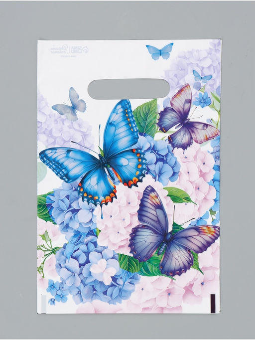 • Цена за 50 шт. Подарочный пакет, полиэтиленовый, с вырубной ручкой, Бабочки, 20 х 30 см