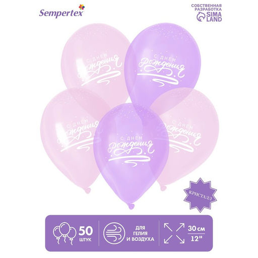 • Воздушные шары латексные 12" «С Днём рождения», 50 шт., кристалл, МИКС