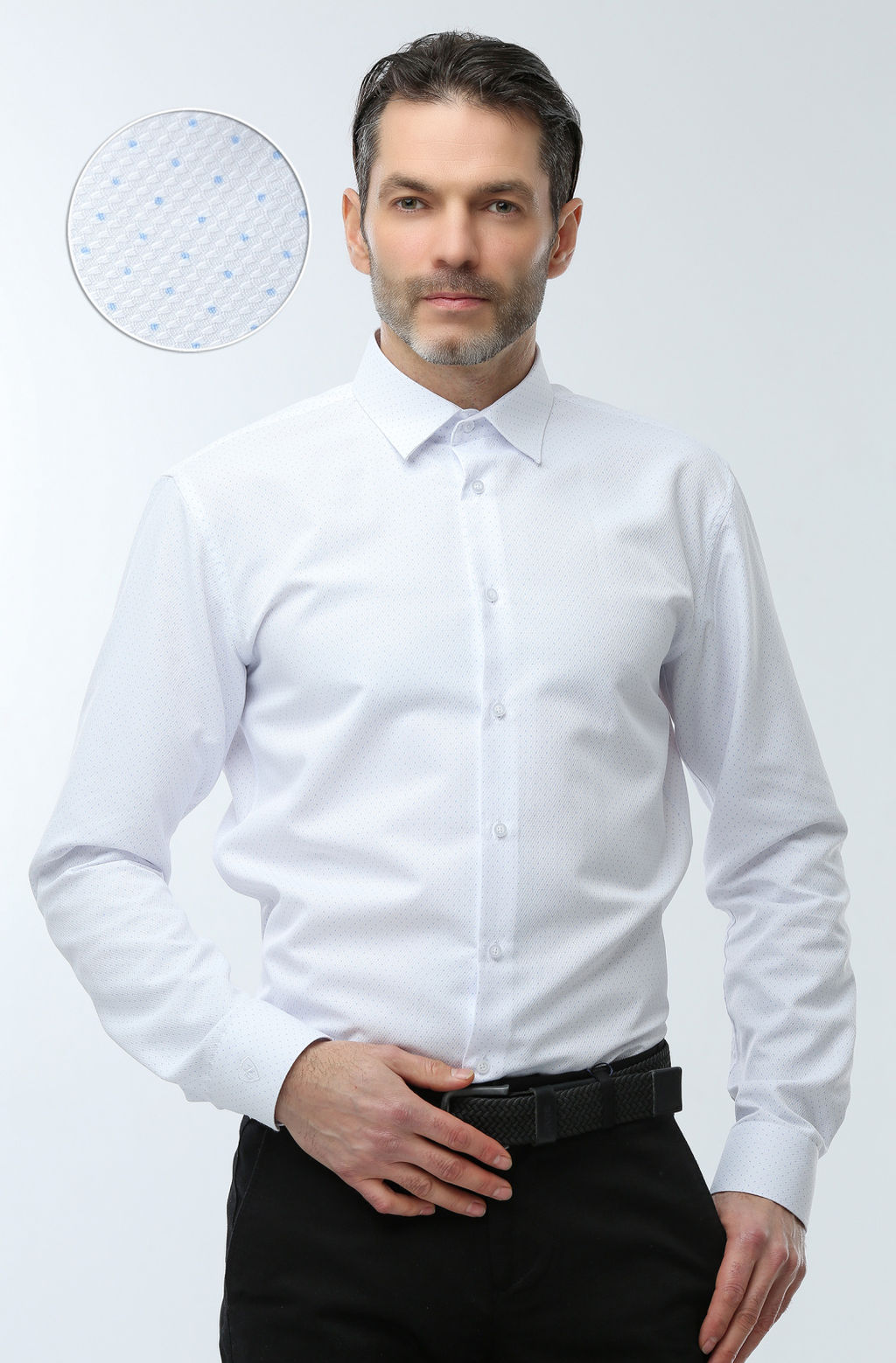 Классическая рубашка парямого кроя (classik fit) белого цвета в горох с длинным рукавом