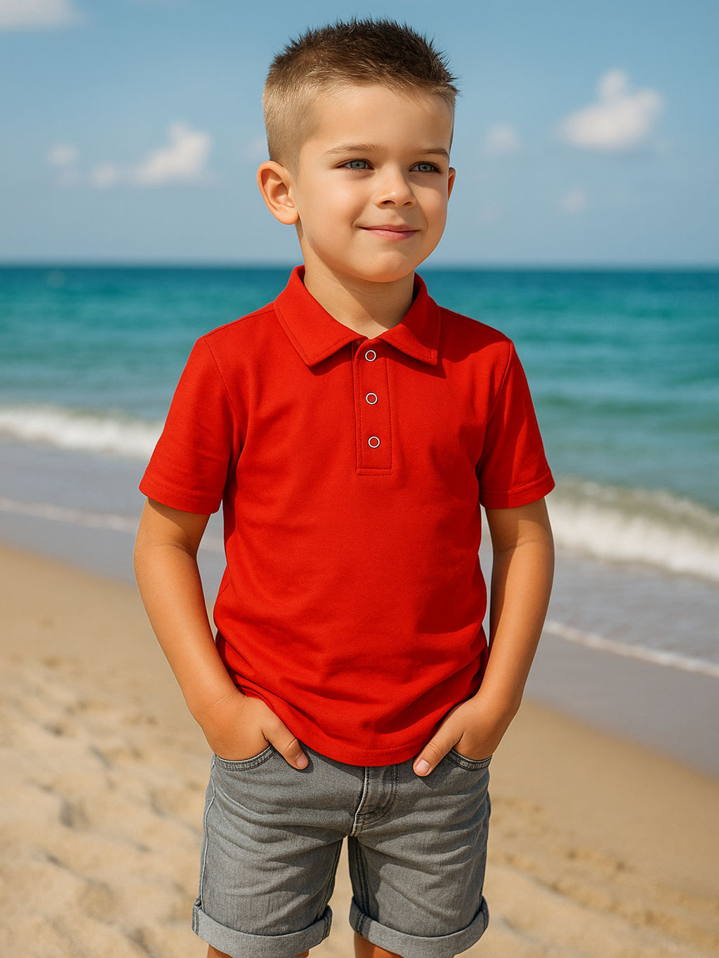 Рубашка поло с короткими рукавами понравится мальчику своим качеством и стильным дизайном. Горловина изделия обработана отложным воротником, снизу от которого расположены застёжки в стиле “поло”. Подол и края рукавов аккуратно прошиты крепкими швами.