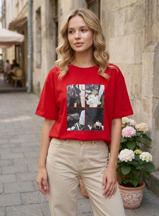 • K13398 Футболка OVER SIZE КРАСНЫЙ