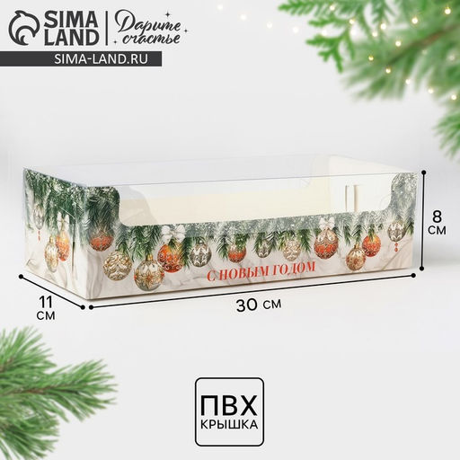 • Цена за 5 шт. Коробка для кондитерских изделий новогодняя с пластиковой крышкой «С Новым годом», 30×8×11 см