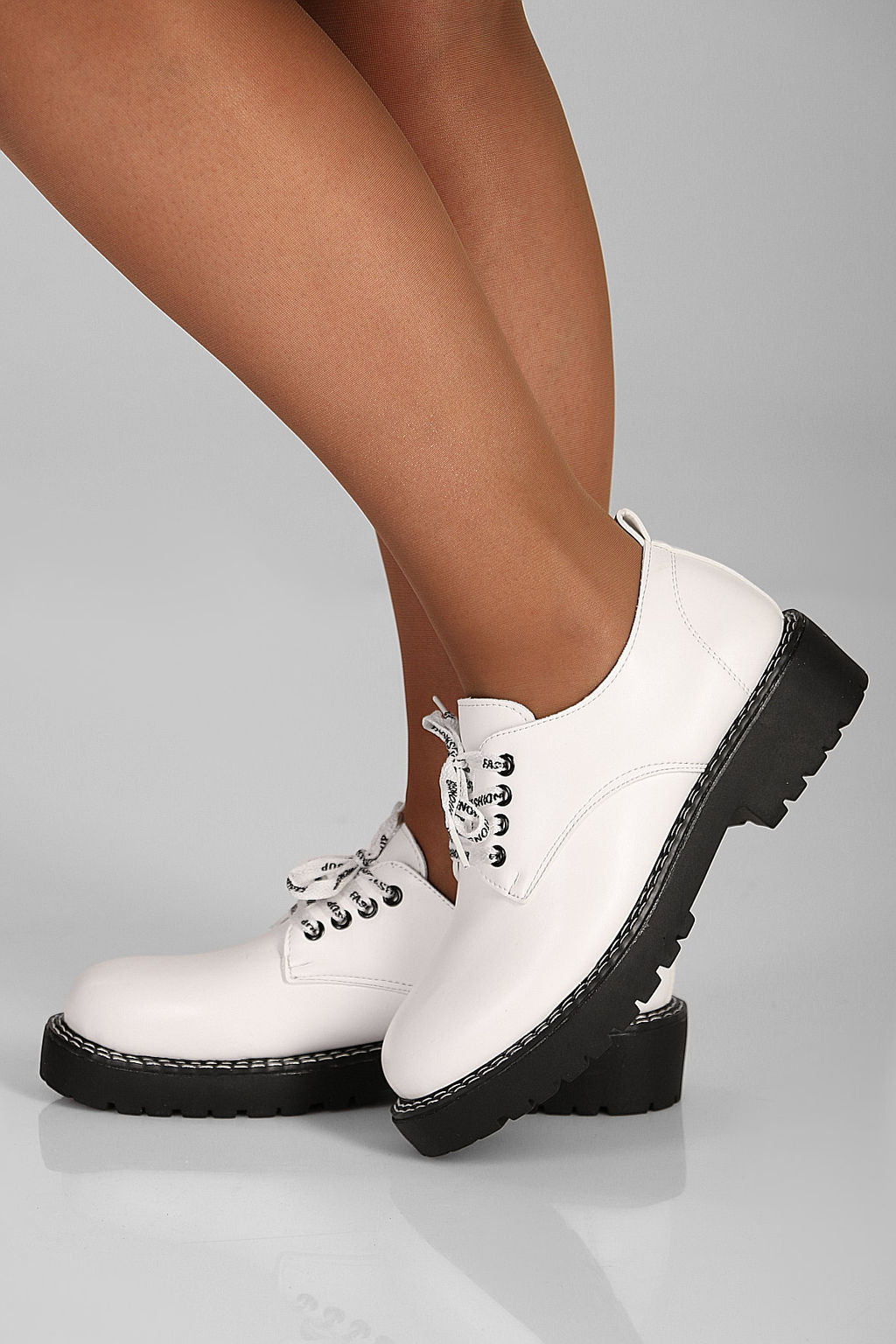 • Туфли женские белые на шнурках