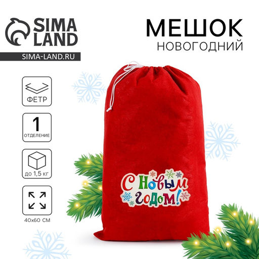 Новогодний мешок Деда Мороза «С Новым Годом» поможет дополнить образ Деда Мороза в новогоднюю ночь! В него поместятся много подарков для детей. Также его можно использовать в качестве упаковки для подарка, малыш удивится, когда найдёт под ёлкой подарок в таком мешке!ОсобенностиРазмер мешка: 60 × 40 смМешок выдерживает до 1,5 кгМешок закрывается при помощи затягивания лентыНовогодний мешок сделан из фетраМешок можно использовать для создания праздничного интерьера, он обязательно поднимет новогоднее настроение!Этот очаровательный мешок станет прекрасным дополнением к вашему праздничному декору и создаст неповторимую атмосферу волшебства. Набор: Нет. Размер, см: 40 х 60. Символ года: Нет. Тематика праздника: Новый год. Возраст: Любой. Тематика: Новогодние. Бесплатная доставка: Да. Наша разработка: Да. Размеры товара: 0.5/60/40.