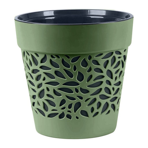 • Кашпо для цветов пластиковое 3,5л d-16,8см "Блоссом" Оливковый/Антрацит