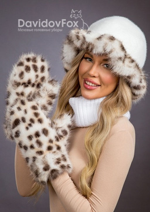 • Комплект шляпка экомех волна рысь, варежки