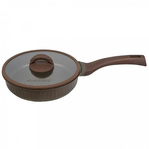 • Сковорода с тефлоновым покрытием д22см "Stella", h5,2см, s0,32см, дно д20см, s0,4см, ручка из термостойкого пластика, стеклянная крышка, мокко (mokko) (Россия)