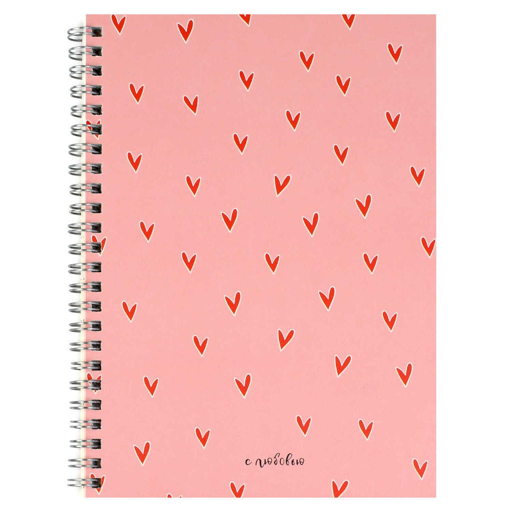 Блокнот, А5, 48 л, арт. 71521 СЕРДЕЧКИ НА РОЗОВОМ / Блок - белый офсет 80 г/м?, клетка, гребень по длинной стороне, матовая ламинация/