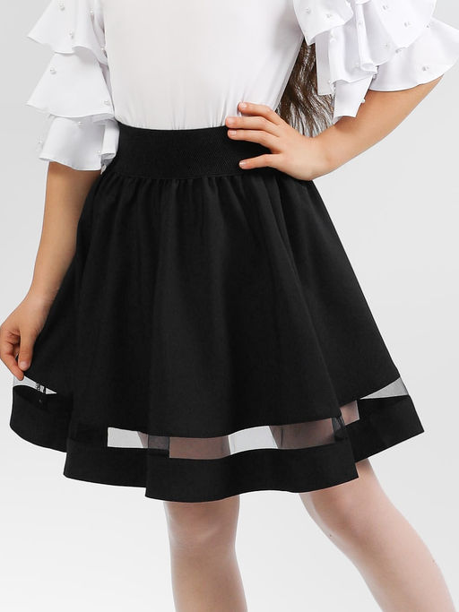 Юбка для девочки Соль&Перец выполнена из износостойкого материала габардина, который позволит надолго сохранить форму и привлекательный внешний вид изделия. Широкий эластичный пояс обеспечивает комфортную посадку на талии, а вставка из прозрачного фатина добавляет нотку игривости и воздушности образу. Такая юбка идеально подойдёт для создания стильного школьного образа, сочетая в себе элегантность и модные тенденции.