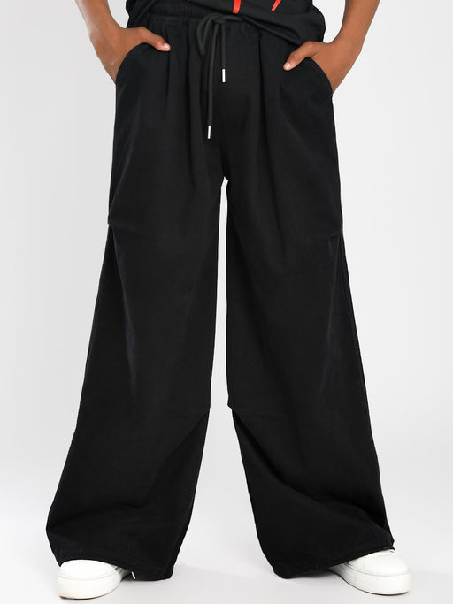 Брюки подростковые Соль&Перец, из плотного коттона, свободного кроя оверсайз. Широкий, эластичный пояс без молнии и пуговиц со шнурком, по бокам удобные карманы, низ брючин на кулиске.