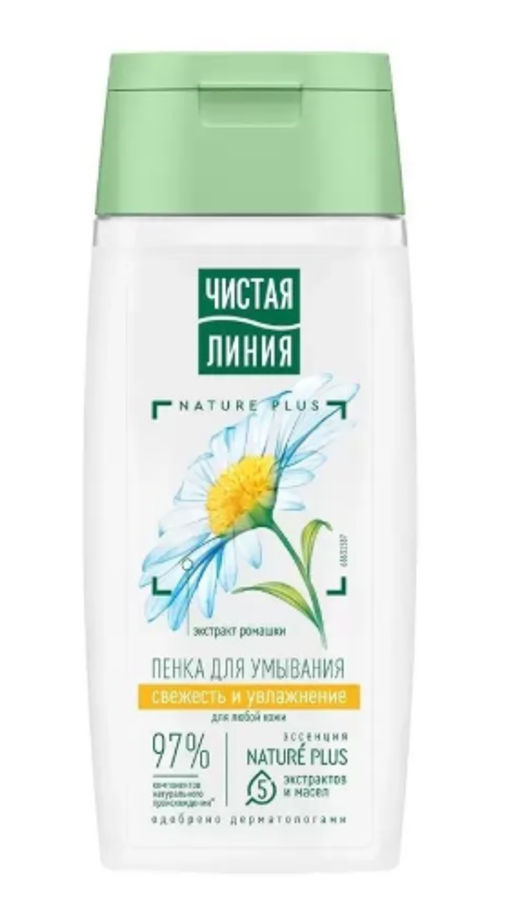 В процессе очищения кожа нуждается также и в уходе. Попробуйте пенку для умывания, разработанную экспертами бренда Чистая Линия, которая качественно очищает без сухости, придает свежесть и сияние, увлажняет кожу. Продукт содержит 97% компонентов натурального происхождения*. Активные ингредиенты: эссенция из пяти экстрактов и масел NATURE PLUS (экстракты вербены и пиона, масла миндаля, льна, оливы) и экстракт ромашки.Экстракт вербены восстанавливает баланс увлажненности и тонизирует. Экстракт пиона и льняное масло успокаивают и смягчают. Масло миндаля содержит жирные кислоты, витамины Е и F, питает и выравнивает поверхность кожи. Ферментированное оливковое масло питает и защищает от преждевременного старения. Экстракт ромашки успокаивает и увлажняет кожу, сохраняя ее естественную красоту. Воздушная, нежная текстура очень комфортна в применении. Результат: очищенная, увлажненная и естественно красивая кожа. Для наилучшего эффекта дополните уход лосьоном-тоником Чистая Линия по типу кожи. Свойства подтверждены потребительским тестированием**. 90% респондентов отметили, что пенка мягко очищает и увлажняет; 94% дарит ощущение чистоты и свежести. Одобрено дерматологами. Продукт не тестируется на животных