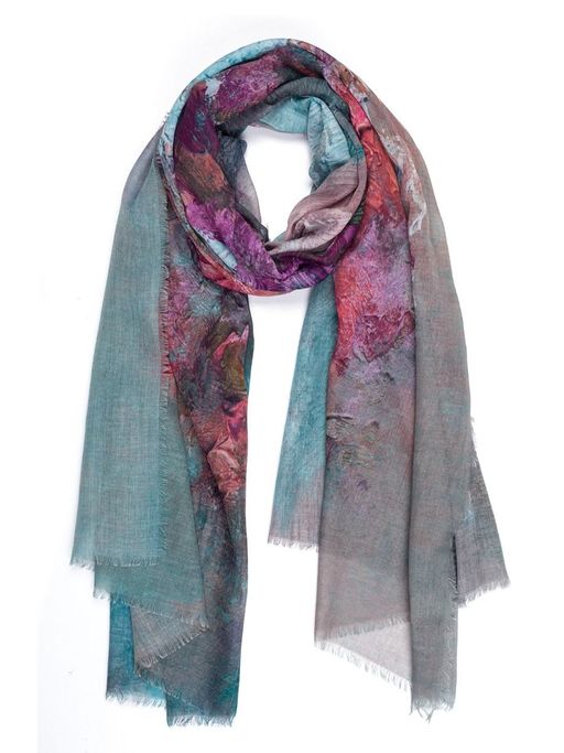 Легкий палантин из вискозы с объемным цветочным принтом. Материал легко и красиво драпируется.
