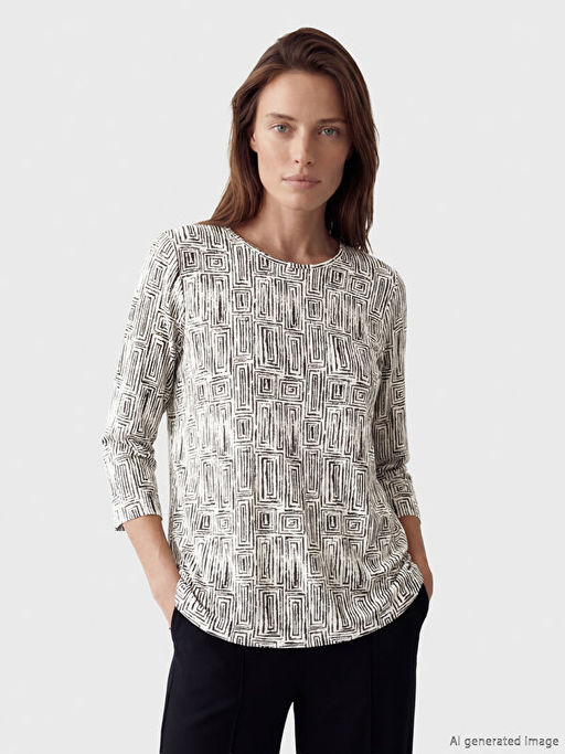 • Bisiklet Yaka Desenli Kad?n Ti??rt