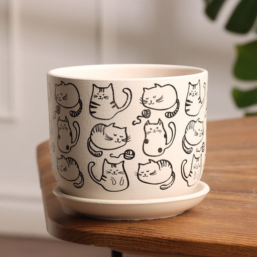 Горшок для цветов «Коты», 800 мл, d=12 см, h=10 см, керамический, с поддоном, белый