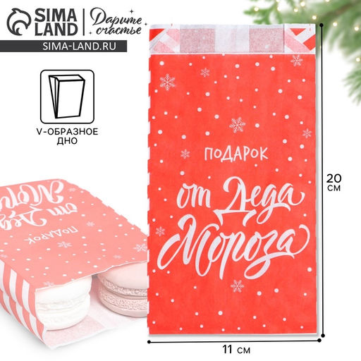 • Цена за 50 шт. Пакет бумажный фасовочный новогодний, крафт, V-образное дно «От Деда Мороза», 20×10×7 см