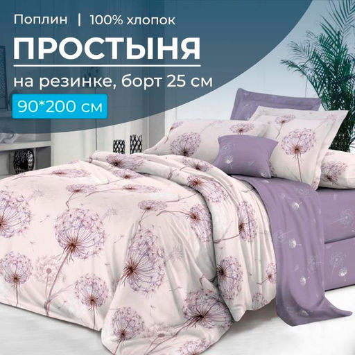 Очень удобная простыня на резинке из поплина плотностью ткани 110 г/м2 на спальное место 90*200 см (ширина и длина матраса). Простыня имеет глубокий борт/спуск 25 см. Резинка проходит по всему периметру (кругу) спального места. Простыня из поплина изготовлена из 100% хлопка, который обладает высоким качеством, что гарантирует Вам долговечность и удобство использования. Хлопковая простыня обеспечит приятную прохладу летом и тепло зимой, благодаря своей дышащей и гипоаллергенной структуре. Кроме того, она легко стирается и сохраняет свою форму и качество даже после многих стирок. Выберите качество и комфорт для своего сна с нашей хлопковой простыней на резинке из поплина!Обратите внимание! Простыни сшиты с учетом усадки ткани (с большим припуском по длине и ширине), поэтому необходима предварительная стирка данного швейного изделия. -- Характеристики -- Вес: 380 кг Размерность простыни: 1,5-спальная на резинке Размер простыни: 90x200 Ткань: Поплин Состав: 100 % хлопок Плотность: 110 г/м2 Плотность плетения: Высокая Режим стирки: При 40 градусах Цвет: Фиолетовый Расцветка: Лю6ляна (компаньон) Вид принта: Одуванчики Целевая аудитория: Взрослая