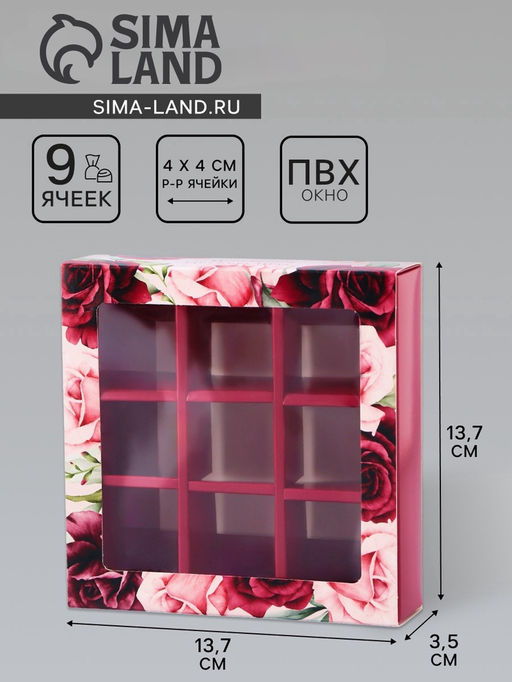 • Цена за 5 шт. Коробка для конфет с обечайкой 9 шт. «Прекрасных мгновений», 13.7×13.7×3.5 см