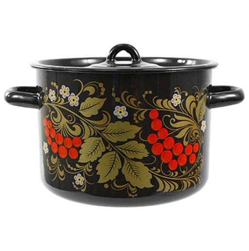 • "Рябина" Кастрюля эмалированная 4,5л, д21см, h14см, цилиндрическая форма, металлическая крышка, черный (Россия)