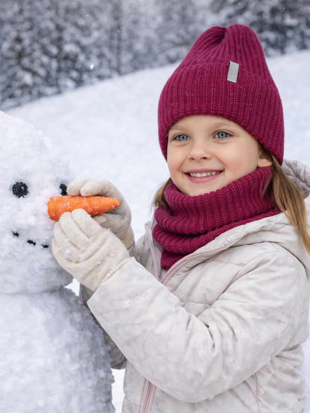 Назначение: комплект для детей шапка и снуд для мальчиков и девочек. Свойства ткани: плотная, износостойкая, мягкая и тёплая пряжа. Особенности модели: детский комплект из шапки и снуда. Шапка с отворотом. Снуд складывается в два слоя. Комплект однотонный малинового цвета, украшен эмблемами.>