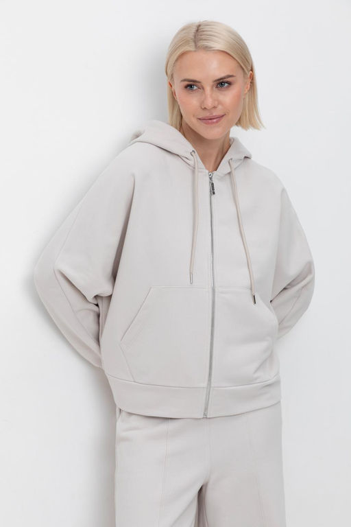 Объемная толстовка на молнии из мягкого трикотажного футера. Наличие специальных обработок полотна придало изделию мягкость и шелковистость.. Состав: 80% хлопок, 20% полиэстер