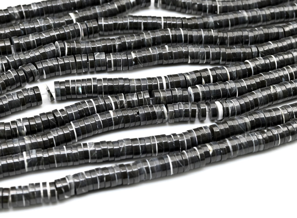• Бусины из перламутра тонированного диски 6мм цв.графит, 40см, 225 бусин Радуга камня