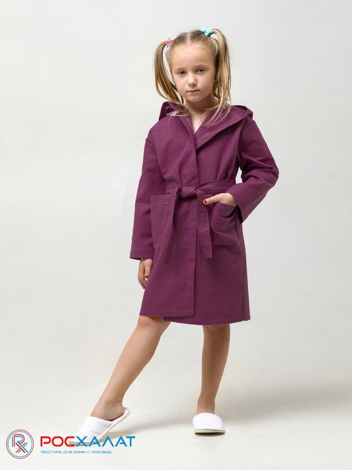 • Детский вафельный халат с капюшоном сухая роза В-07 (29)