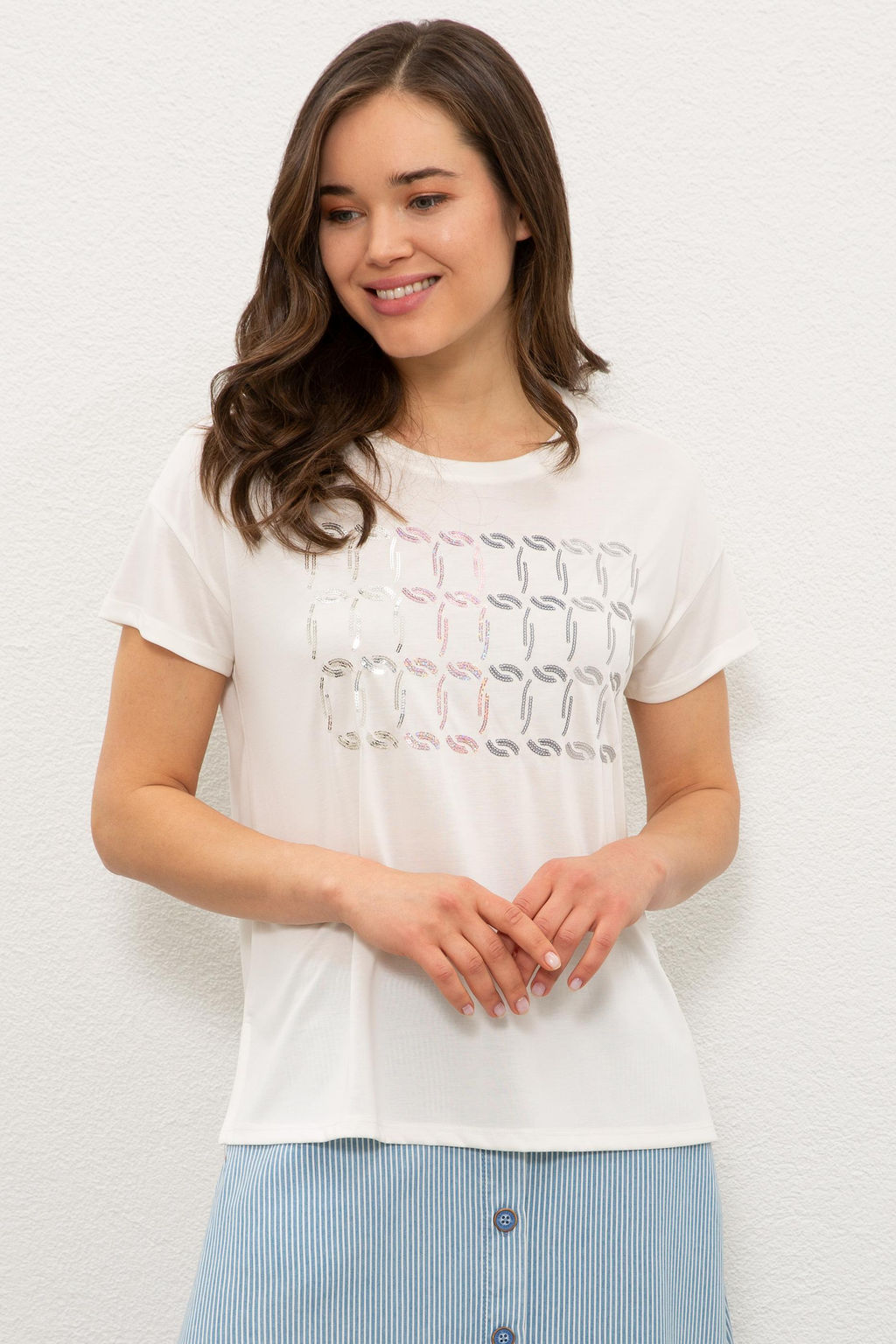 Kad_n Beyaz Bisiklet Yaka Ti__rt