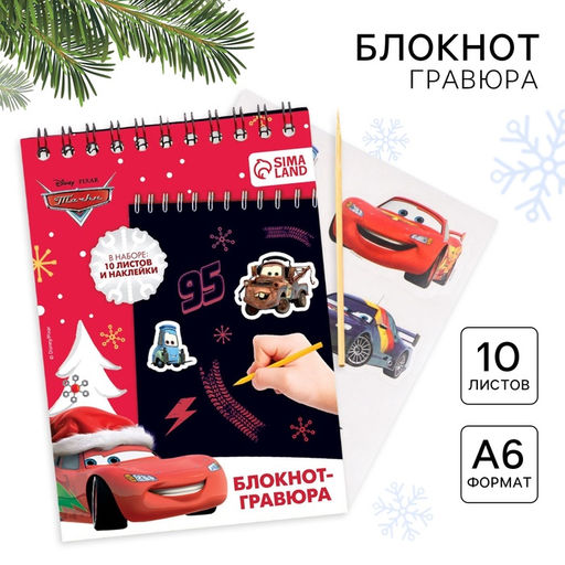 Блокнот - гравюра на новый год «Молния Маккуин», 10 листов, лист наклеек, Тачки