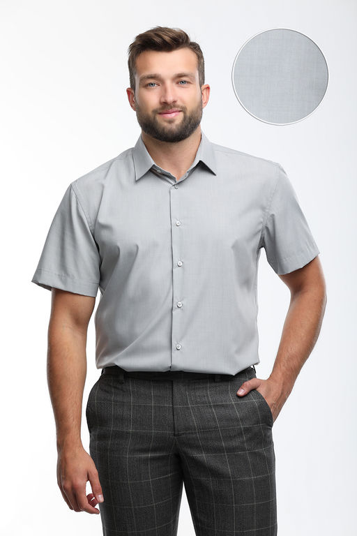 Классическая рубашка серого цвета с коротким рукавом в силуэте Classik fit. Выполнена из ткани модал: тактильно очень мягкая и шелковистая ткань, гипоаллергенная, не раздражает чувствительную кожу. Крученый (пряденый) полиэстер - передовой материал используется в производстве одежды, где желательны тактильный комфорт и гладкость. Комфортная рубашка для лета.