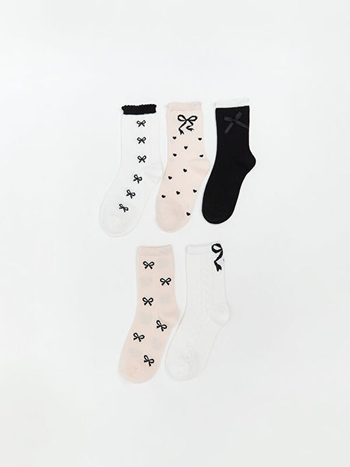 Fiyonk Desenli K?z ?ocuk Soket ?orap 5li