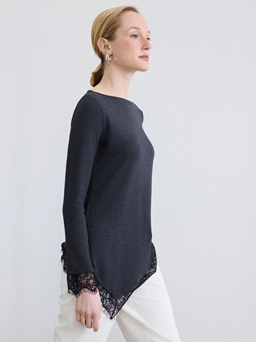 Kay?k Yaka Asimetrik Dantel Bluz