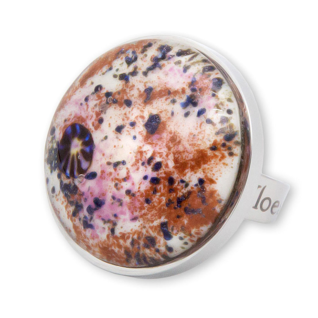Кольцо изготовлено из муранского стекла и гипоаллергенной ювелирной стали, что очень важно для людей с чувствительной кожей. Металл не темнеет и не подвергается воздействиям окружающей среды, надолго обеспечивая красивый внешний вид изделия. Диаметр стеклянного элемента - 2,5 см. Кольцо безразмерное, регулируется с 16 до 19 размера. Вес - 12 гр.