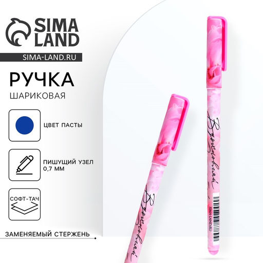 • Цена за 10 шт. Ручка шариковая, синяя паста, 0.7 мм, с колпачком, пластик софт-тач «Самой нежной»