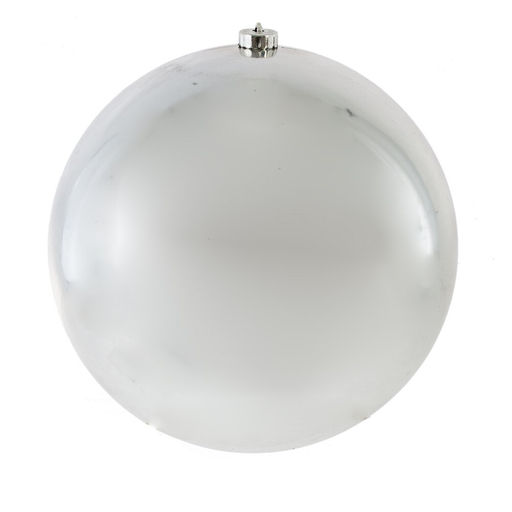 Новогодний пластиковый шар на елку в серебряном цвете - классическое украшение для рождественского дерева. Диаметр: 15 см.