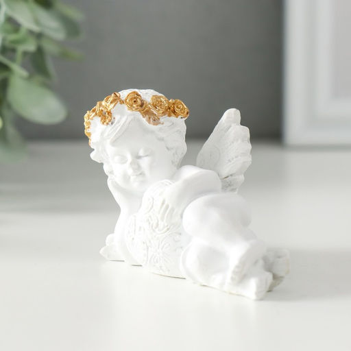 • Фигурка полистоун Белоснежный ангел обнимает сердечко с узорами, 9?4.5?5 см