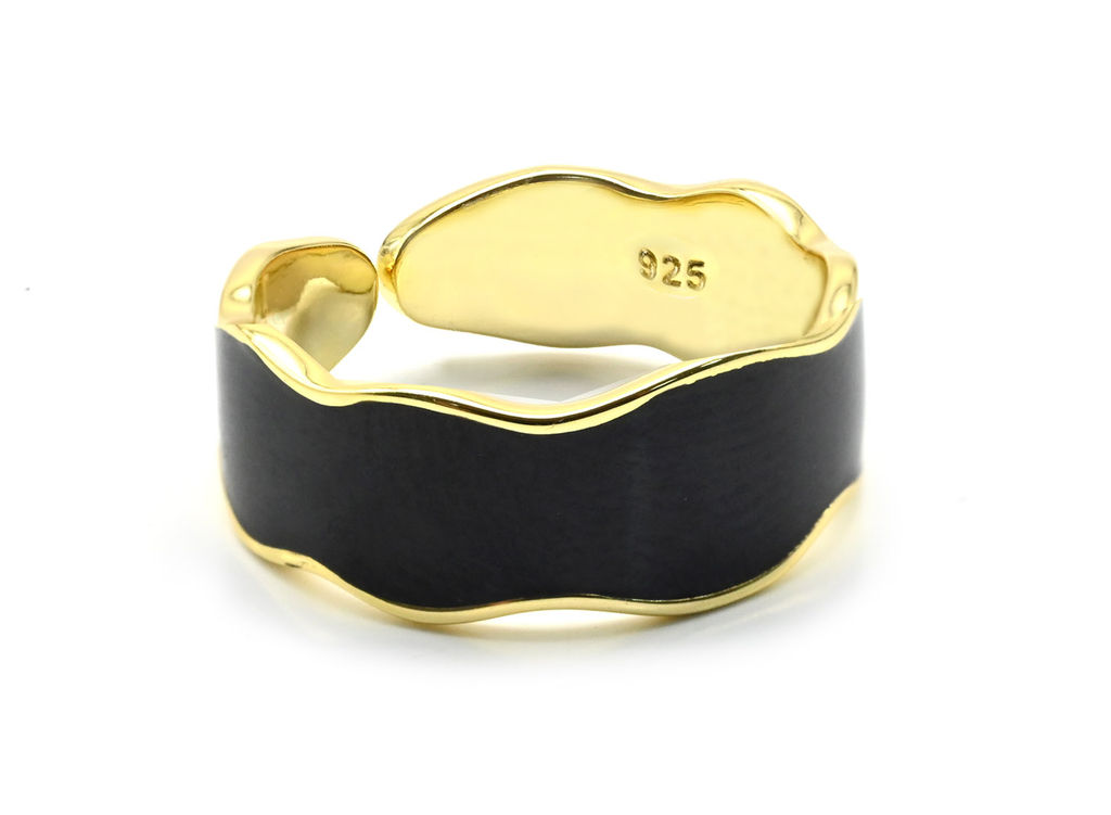 • Кольцо модное с эмалью черной, золотистое Радуга камня