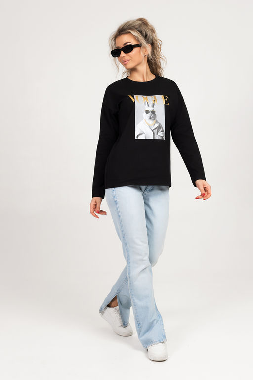 Лонгслив с прямым кроем и свободным силуэтом, доходящий до линии бёдер.Плечи слегка приспущены, рукав длинный, втачной. Горловина имеет округлую форму и обтачку. На передней части расположен оригинальный принт.